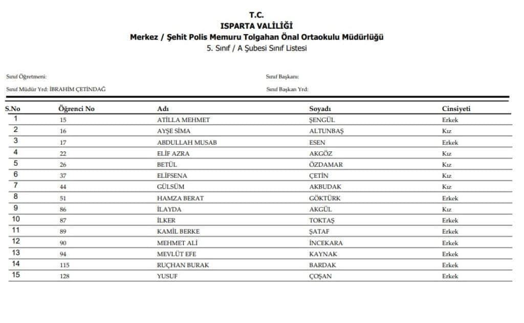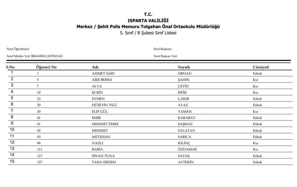 2025-2026 Eğitim Öğretim Yılı Bakanlık tarafından oluşturulan 5. Sınıf kuraları çekilmiştir.